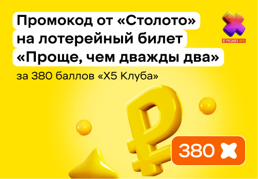 Промокод на лотерейный билет «Проще, чем дважды два» от «Столото» за 380 баллов «Х5 Клуба»