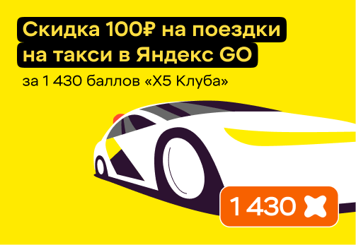 Такси со скидкой 100₽ через Яндекс Go за 1 430 баллов