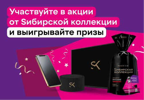 Акция «Признайтесь, захотелось» от Sибирской коллекции – возможность выиграть множество ценных призов. Загружайте чеки за покупки продукции Sибирской коллекции подарки и участвуйте в розыгрышах призов или покупайте призы за баллы в магазине подарков.