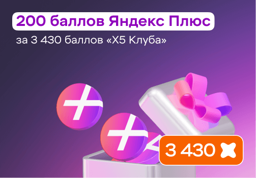 Промокод на Подписку или одну из опций Яндекс Плюс и 200 баллов Яндекс Плюс за 3 430 баллов
