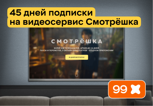 Подписка на видеосервис «Смотрёшка» за 99 баллов