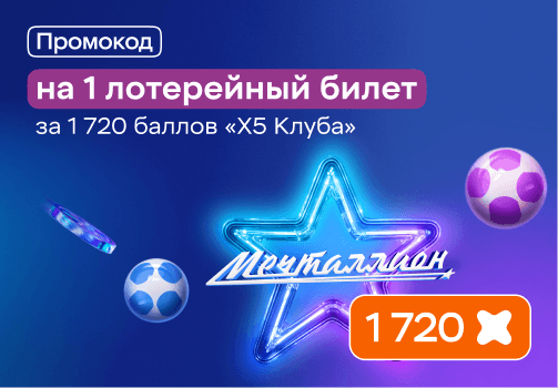 - Обменять баллы на промокод лотерейного билета от бренда «Национальная Лотерея» можно до 10 раз в течение 1 календарного месяца на 1 аккаунт, который участвует в программе лояльности «Х5 Клуб»;