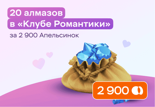 20 алмазов в «Клубе Романтики» за 2 900 баллов