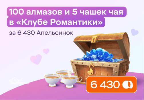 100 алмазов и 5 чашек чая в «Клубе Романтики» за 6 430 баллов